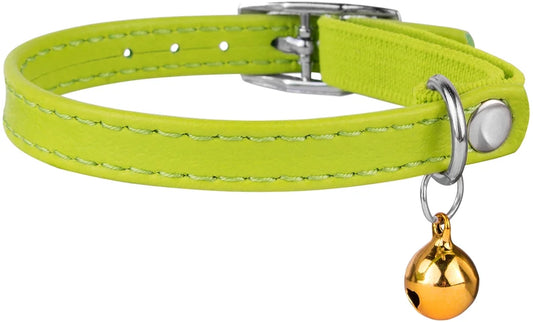 Leather Cat Collar Breakaway Safety Collars Elastic Strap for Small Cats Kitten with Bell, Lime Green