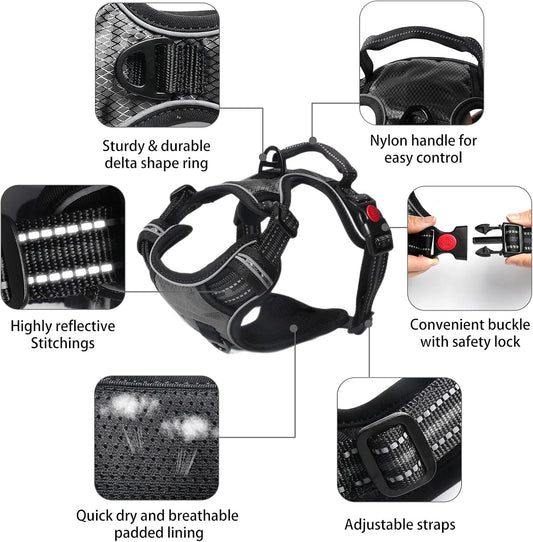 No Pull Dog Harness, Adjustable Soft Padded Dog Vest, Medium Large Dog Harness with 5FT Dog Leash,Reflective No-Choke Pet Oxford Vest with Easy Control Handle Black